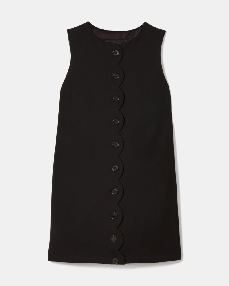 This shift dress is tailored in luxe double crepe with a scalloped placket for a playful—yet chic—finish.